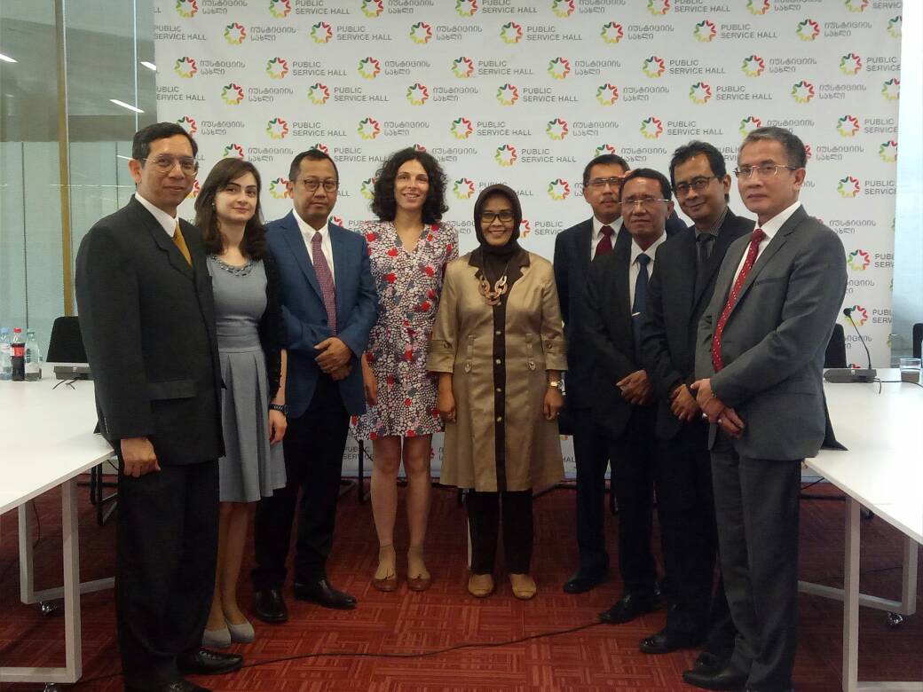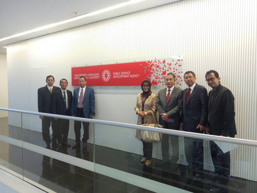 Tsiblisi, Georgia - Sekretaris Jenderal (Sekjen) Kementerian Hukum dan Hak Asasi Manusia (Kemenkumham) Bambang Rantam Sariwanto beserta rombongan mengunjungi gedung pelayanan publik satu atap Georgia, Tsiblisi, Kamis (08/06/2017). Georgia merupakan negara pertama yang menerapkan pelayanan publik dalam satu atap. Pelayanan satu atap juga dapat di laksanakan di wilayah/region yg disebut dgn community center.