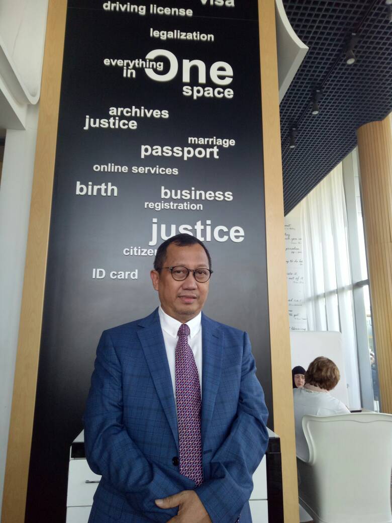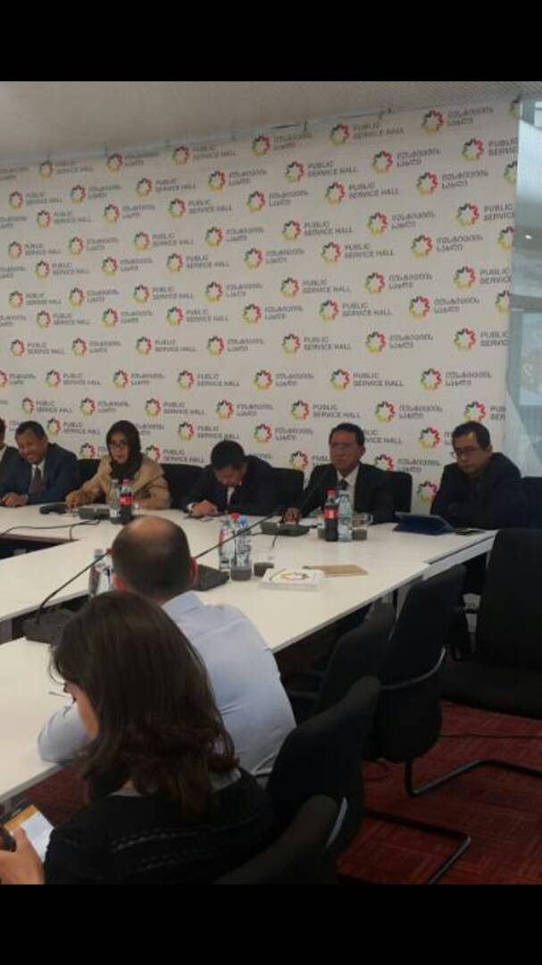 Tsiblisi, Georgia - Sekretaris Jenderal (Sekjen) Kementerian Hukum dan Hak Asasi Manusia (Kemenkumham) Bambang Rantam Sariwanto beserta rombongan mengunjungi gedung pelayanan publik satu atap Georgia, Tsiblisi, Kamis (08/06/2017). Georgia merupakan negara pertama yang menerapkan pelayanan publik dalam satu atap. Pelayanan satu atap juga dapat di laksanakan di wilayah/region yg disebut dgn community center.