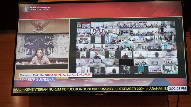 “Pastikan agar pada tahap tes wawancara untuk mempertimbangkan prestasi akademik, non akademik seperti olahraga, seni dan lainnya dan tanyakan pengalaman berorganisasi yang dimiliki serta gali secara mendalam sehingga bisa menilai secara keseluruhan calon yang terbaik dari yang terbaik” jelas Nico saat memberi arahan kepada Kepala Kantor Wilayah (Kakanwil) dan jajarannya, melalui zoom meeting di Ruang Soepomo Gedung Kemenkum, Jakarta, Kamis (05/12/2024).